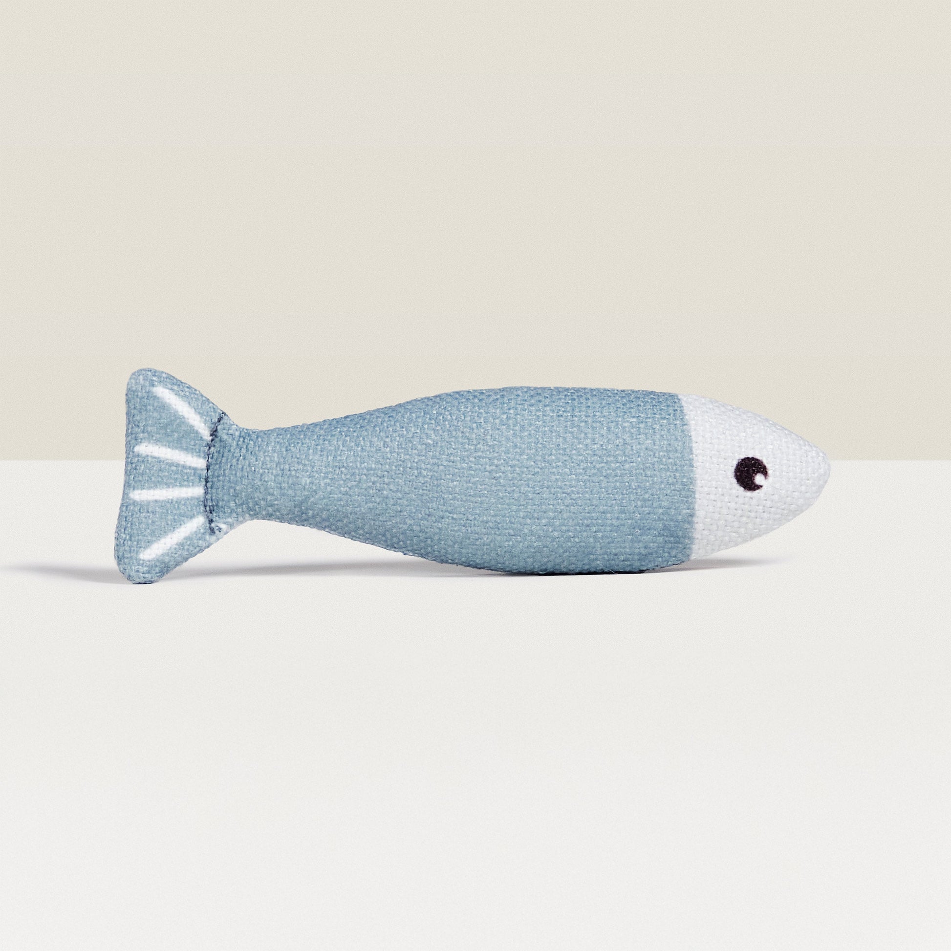 A White And Blue Cat Toy Shaped Like A Fish
