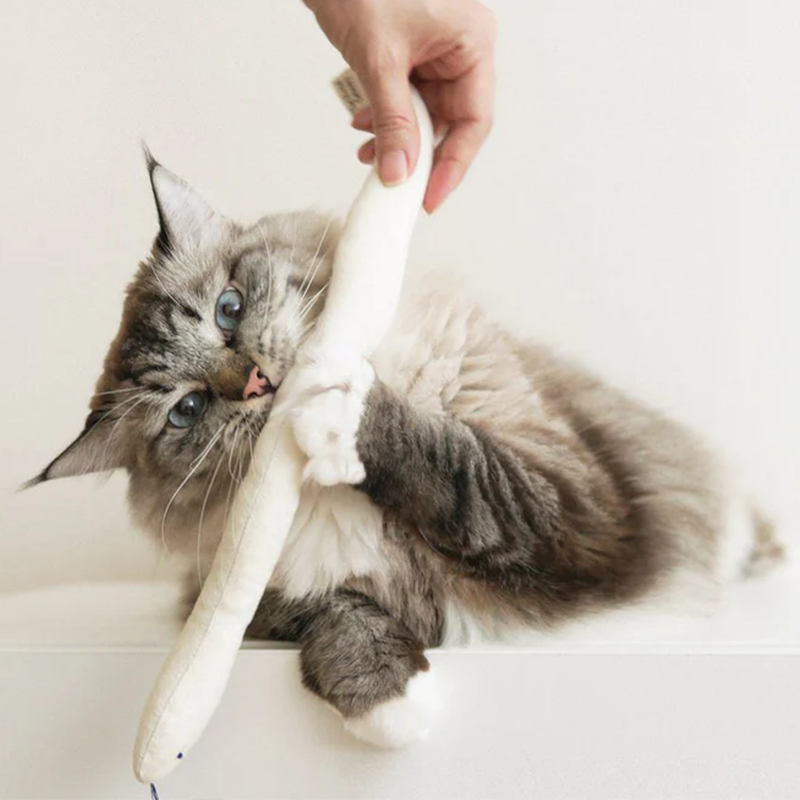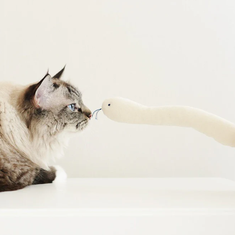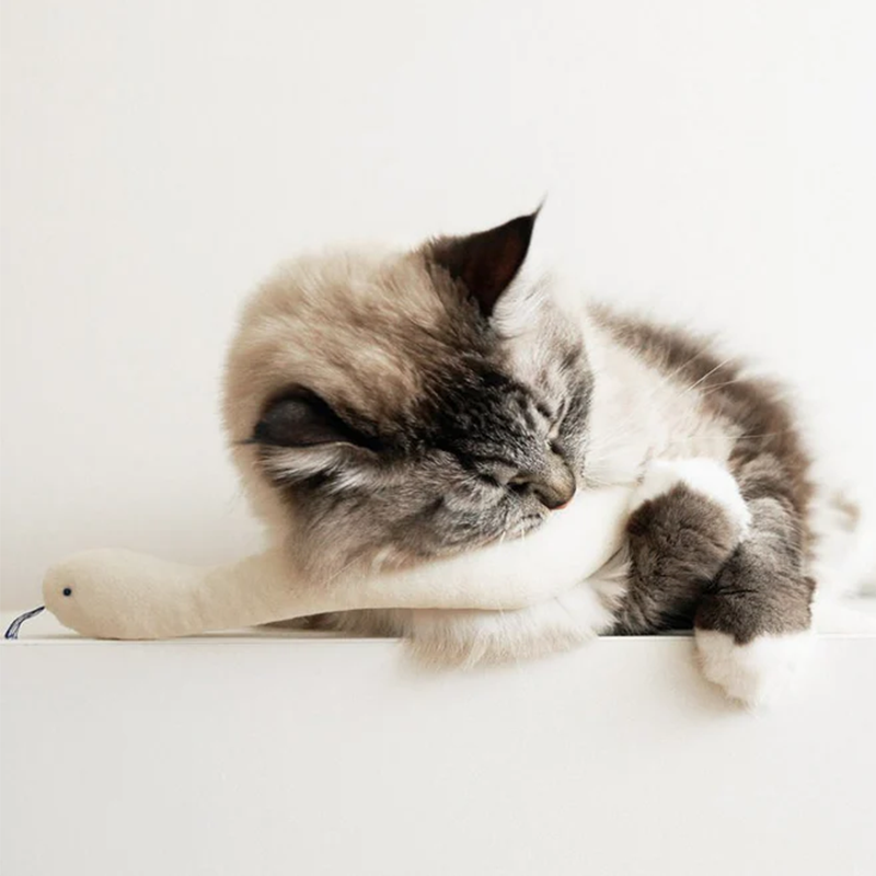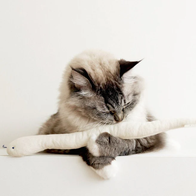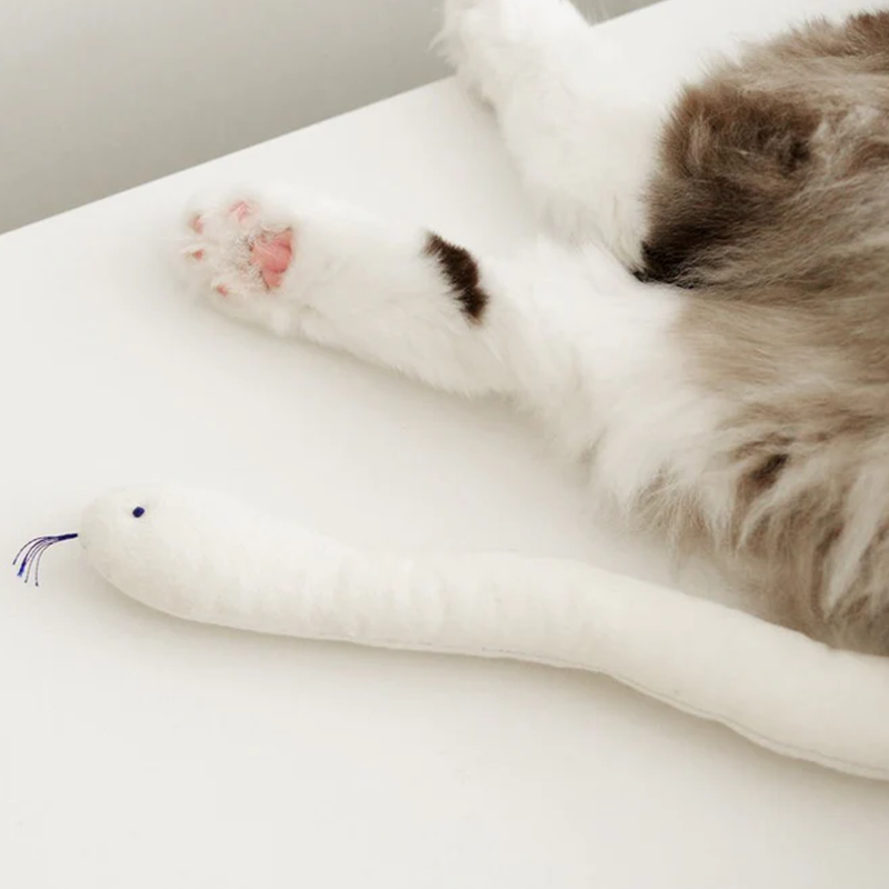 This cream-colored snake-shaped cat toy offers a soft, inviting texture that encourages playful interaction and exercise. Its unique design stimulates your cat’s natural hunting instincts, promoting mental and physical activity. Crafted with pet-safe materials, it provides a safe and engaging way to keep your feline friend entertained and active.