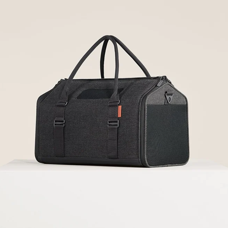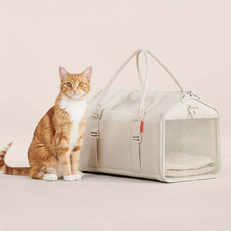 Home-like comfort for cats on the move. This airline-approved carrier provides a stress-free travel experience for you and your feline companion. Crafted from water-resistant canvas. this carrier ensures durability and protection. The breathable mesh windows deliver proper ventilation and visibility.