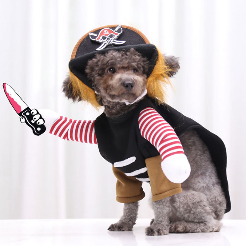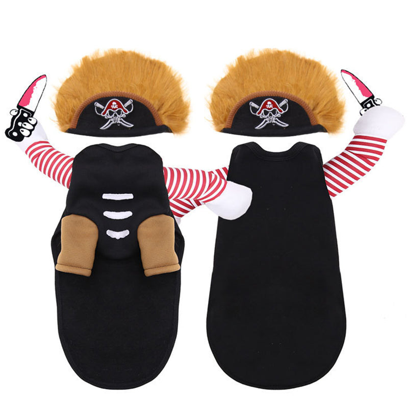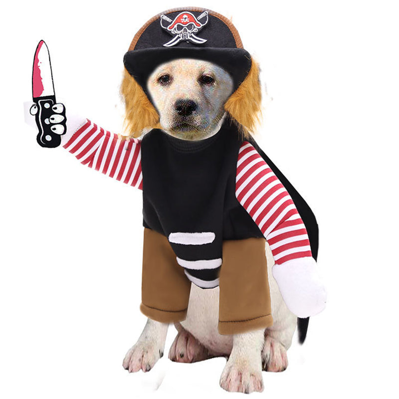 Transform your pet into a hilarious horse rider with this unique costume. Made from high-quality materials, this costume is perfect for Halloween or costume parties. Your pet will surely stand out and bring joy to everyone with this funny and adorable transformation outfit. Let the horse riding adventures begin!
