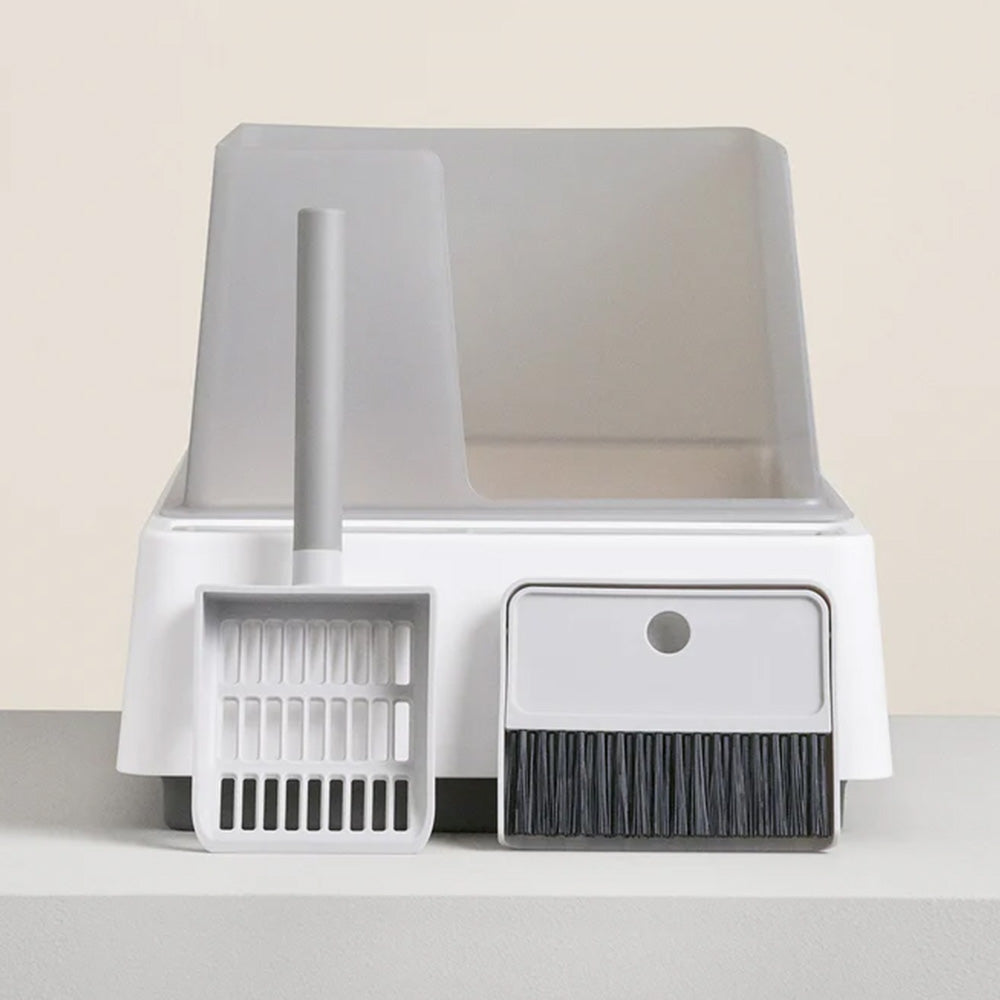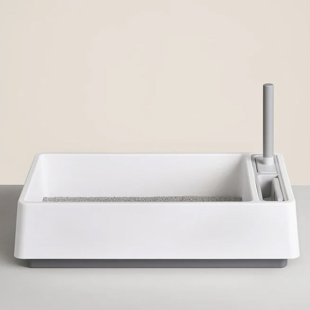 This simple. beautiful. redesigned version of the classic litter box features an integrated scoop. dustpan. and hand brush. It's compact for small spaces. but spacious enough for your cat's comfort. The is made out of thick matte plastic that's easy to wipe clean and feels exceptionally sturdy. Cleaning the litter box will never be your favorite chore. but you can make the best of it (no liners necessary).Size: