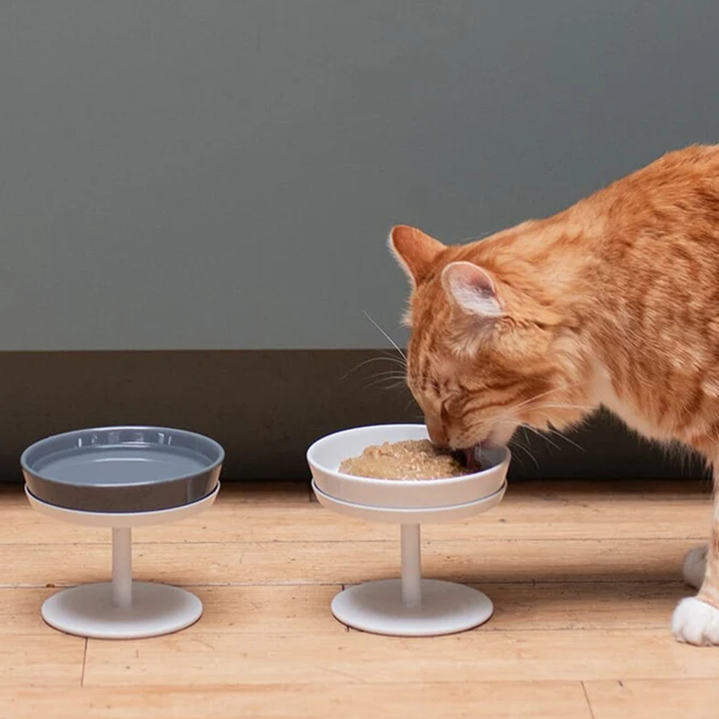 Take your cat's dining to new heights. This elevated dining duo provides your cat with a raised surface to dine or drink. which is suggested to improve digestion and help prevent neck pain. Crafted from high-quality ceramic. the Dock Bowl is conveniently dishwasher safe. The Dock Stand's sturdy metal construction and wide base with full silicone grip make it very stable and help avoid slippage.
