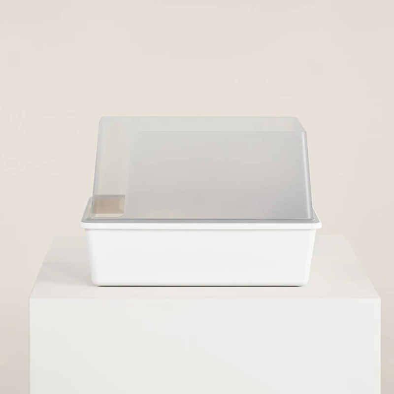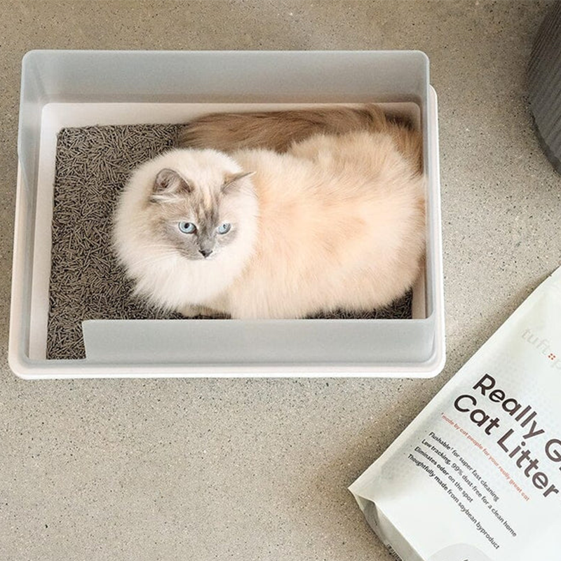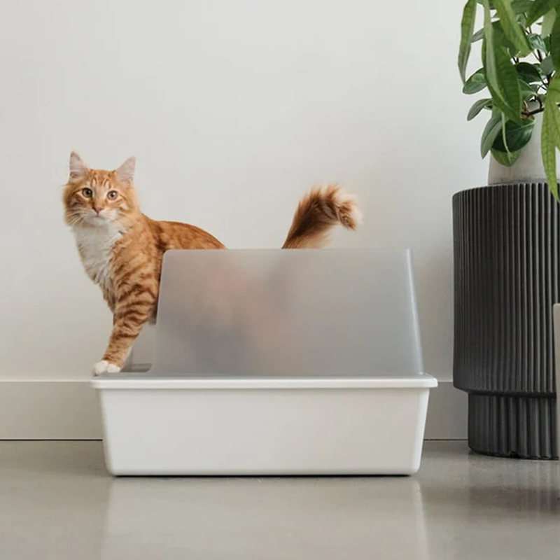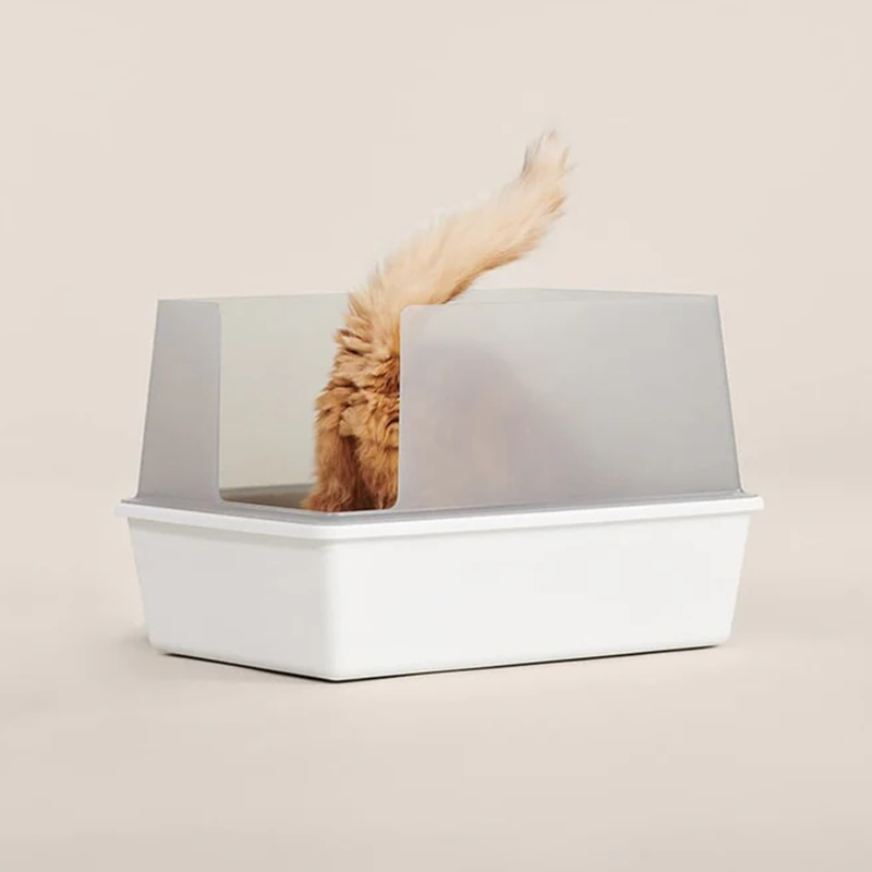 Minimize mess. a simple solution to litter tracking. It from durable. odor-resistant plastic. features removable high 8" walls for mess containment. an open top and semi-transparent sides to keep your cat at ease. and a sturdy anti-stick basin. Its modern. minimal design will complement any space. We've simplified our Litter Box without compromising on quality.