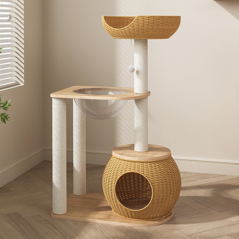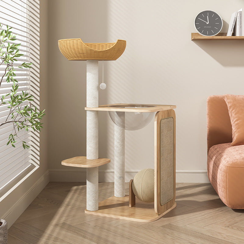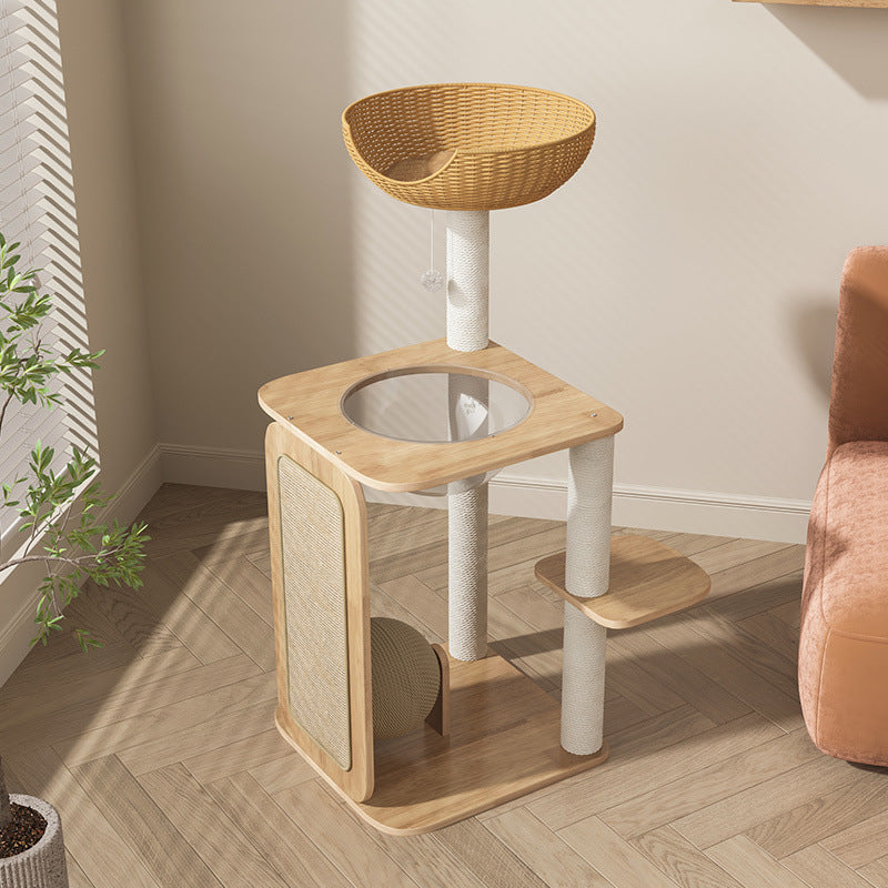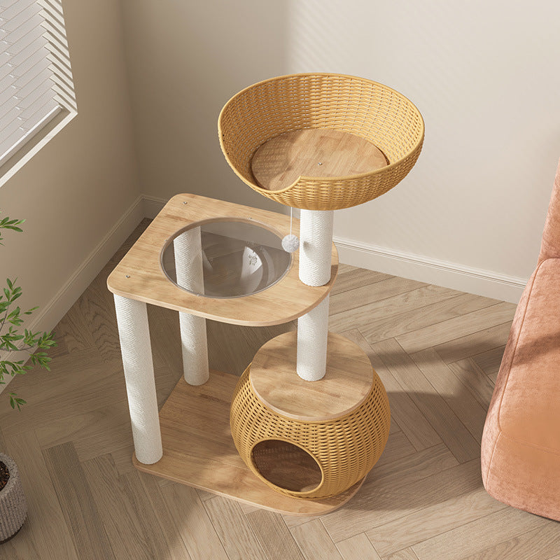 Expertly crafted from solid wood, this cat climbing frame not only provides a cozy bed for your feline friend, but also promotes exercise and a sense of adventure. With its sturdy construction and elegant design, it's the purr-fect addition to any cat-friendly home.