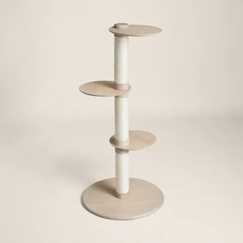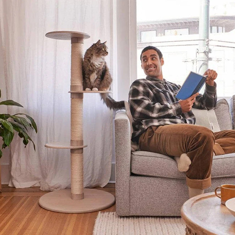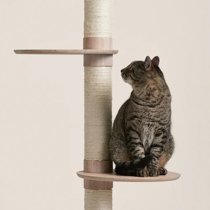 Humans love this modern take on the classic cat tree and scratching post. but more importantly. so do cats. Three tiers of oval perches are adjustable to offer customizable climbs and a variety of areas to perch. The central pillar is entirely wrapped in tightly-secured sisal rope. providing a natural scratching surface at every level.Size: