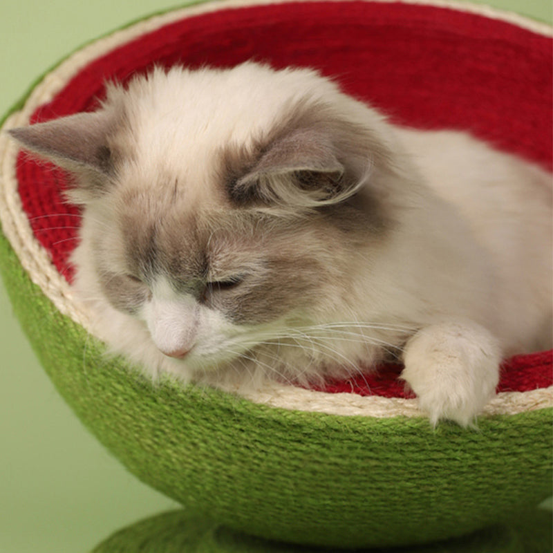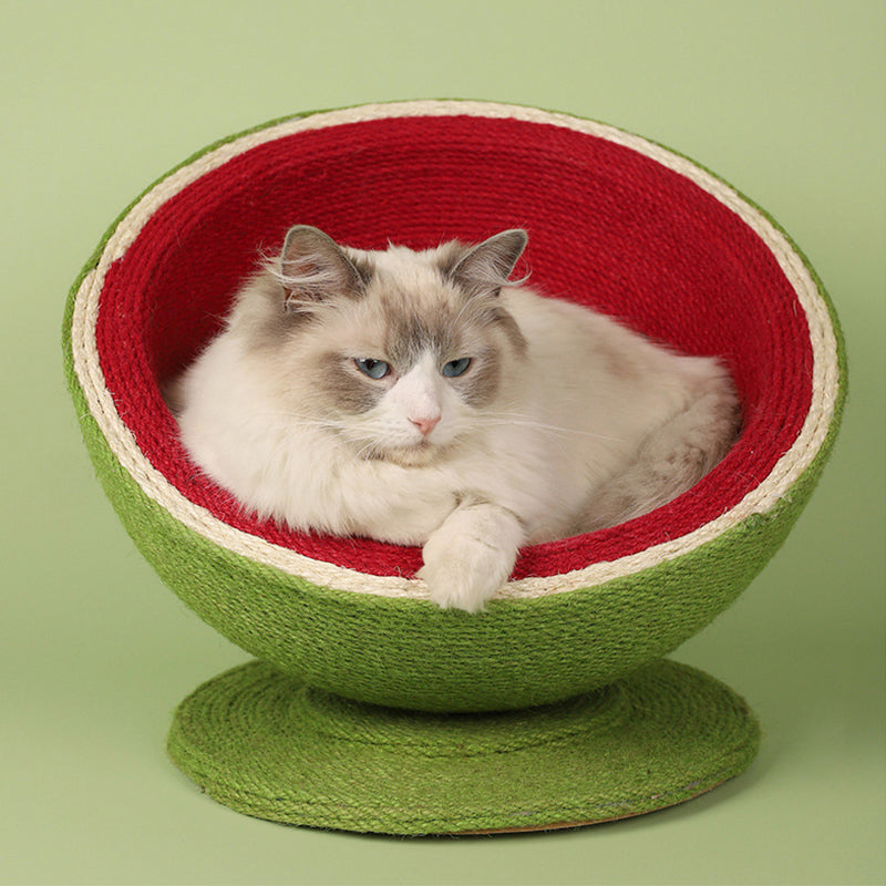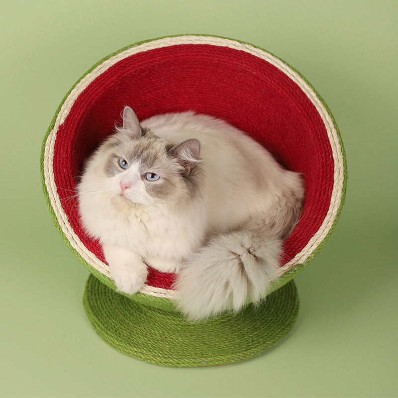 Introducing the Watermelon Sisal Cat Bed Cat Scratching Board Integrated Toy! This innovative product combines a comfortable bed for your cat with a scratching board and integrated toy. Made of durable sisal material, it provides a safe and enjoyable way for your cat to play and sharpen its claws. Treat your feline friend to this multi-functional product today.
